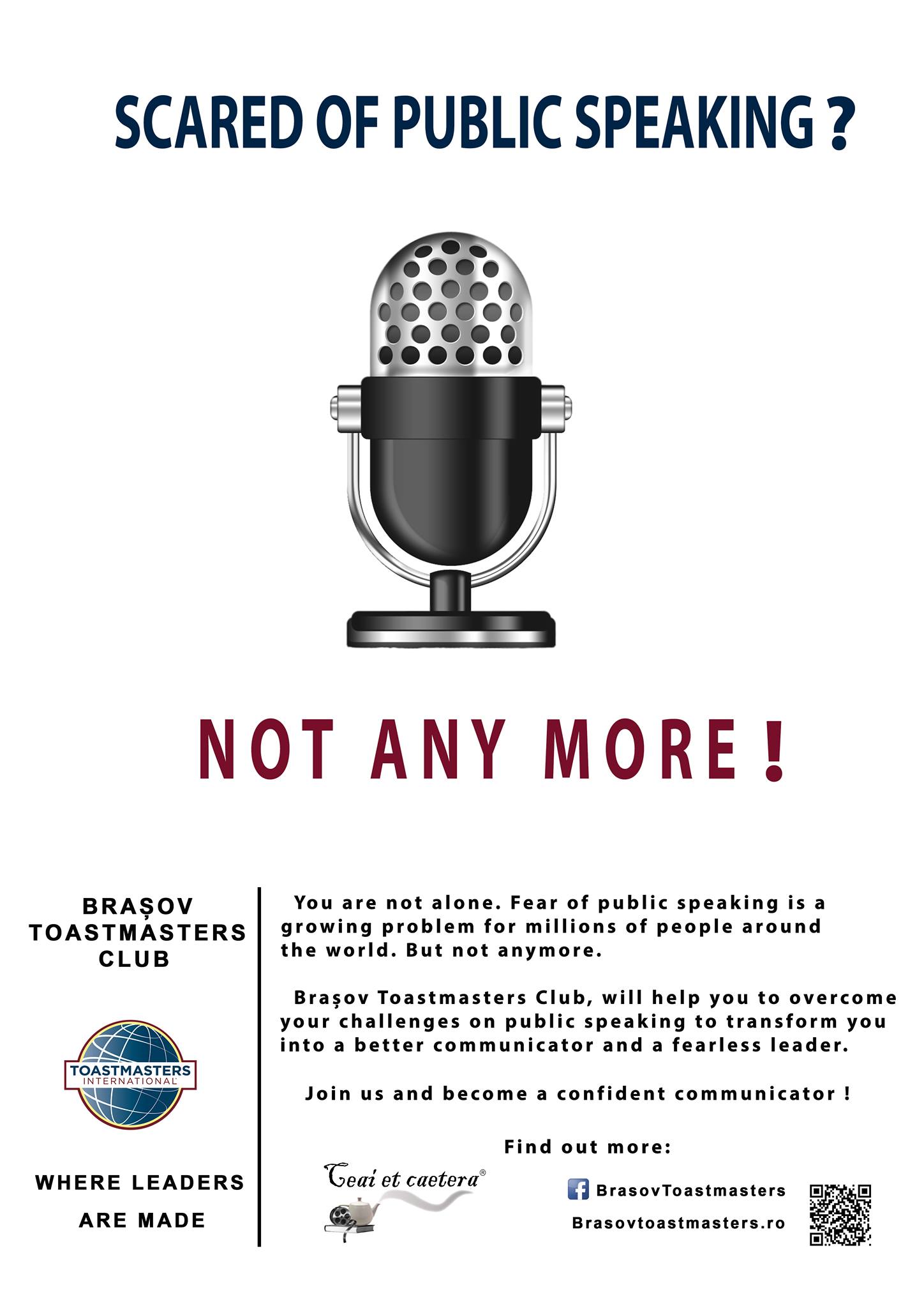 through a worldwide network of meeting locations. Since 2010, Brasov Toastmasters Club has been dedicated to helping people become better Speakers and better Leaders. By joining our weekly meeting you will find a supportive and positive learning experience in which members are empowered to develop communication and leadership skills, resulting in greater self-confidence and personal growth!