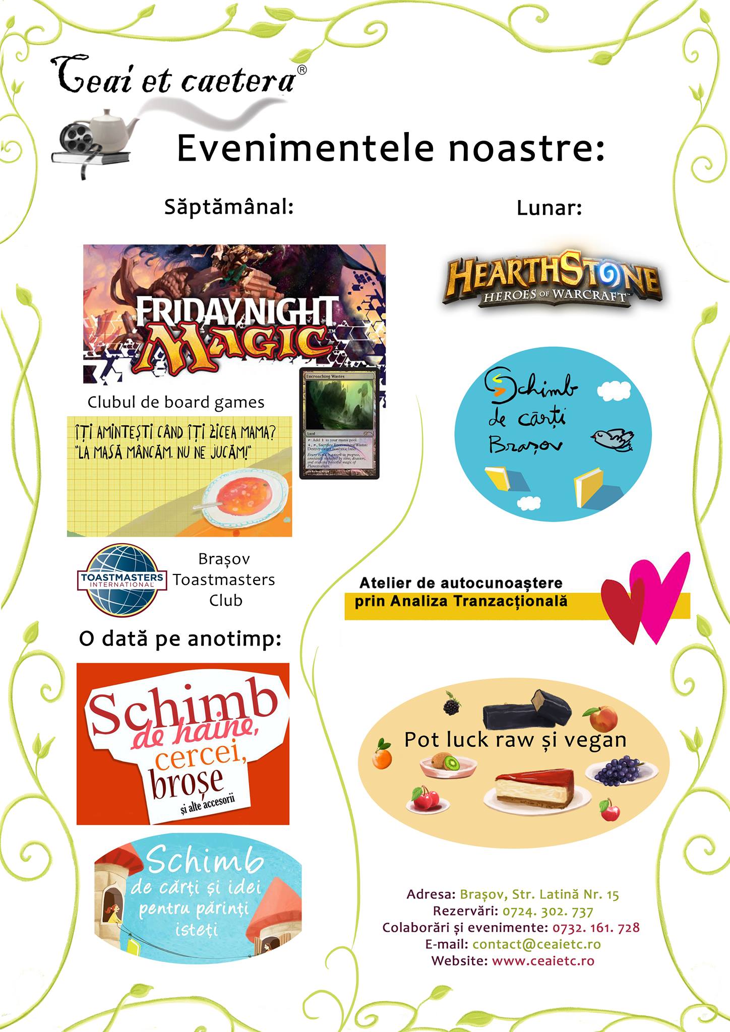Evenimente săptămânale în Ceai et caetera